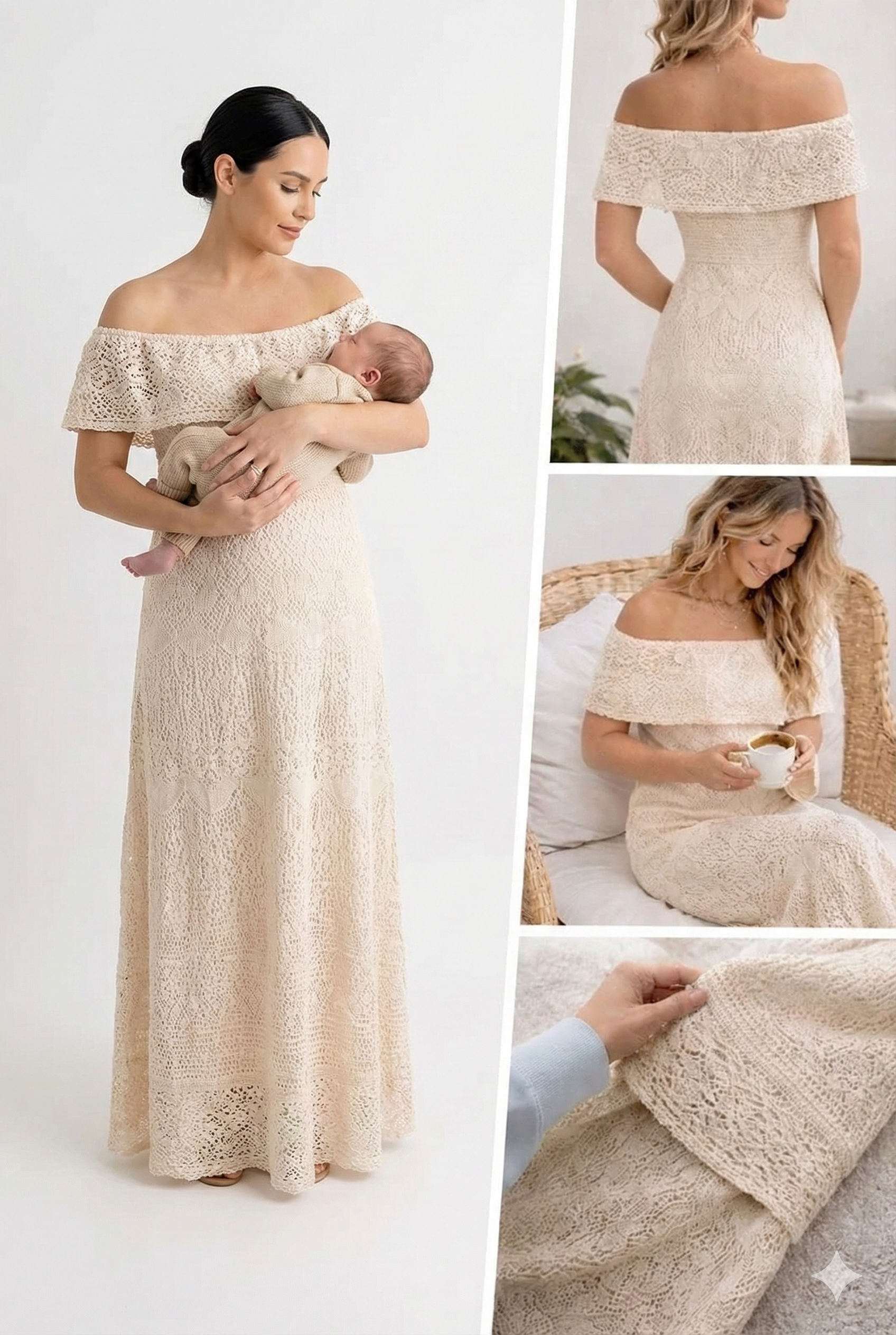 I bring a carefully selected wardrobe for newborns and simple, flattering outfits for moms, so everything looks harmonious and timeless.